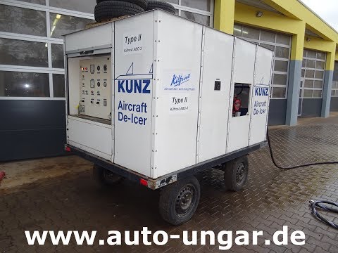 Kunz Aircraft De-Icer 1200E auf Vorfeldtrailer, 600l Wasser, 600l Enteisungsmittel, Aufheizzeit von 12 auf 60° ca. 100min, Honda GX240 Benzin - Motor (8PS), Schlauch-Membran Kolbenpumpe: ZGL max 8bar, Elektroheizung 380V, 1. Hand