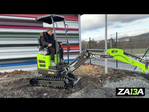 Ультракомпактный гидравлический мини-экскаватор ZA13A с эксплуатационной массой 1225 кг (около 1,2 тонны) — это модель с нулевым выносом задней части и максимальной глубиной копания более 1,8 метра. Он стандартно оснащён ковшом 380 мм, выдвижными гусеницами, двойной скоростью передвижения и дополнительной гидравлической линией (например, для гидромолотов).